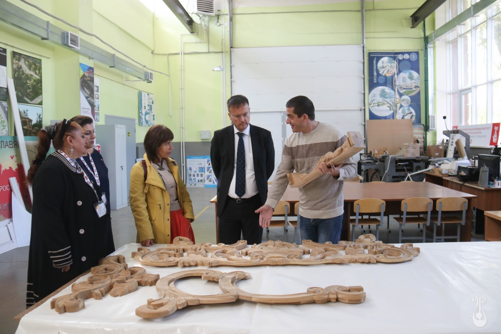 Далее гости фестиваля посетили мастерские центра «Арт-дизайн», где ознакомились с такими направлениями деятельности как: деревообработка, ковка, скульптура, художественный текстиль, керамика.