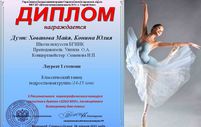 Юные танцоры, под руководством преподавателя Ольги Унтила и концертмейстера Натальи Семёновой, достигли следующих результатов: Екатерина Титова в номинации «Классический танец» и Полина Скворцова в номинации «Народно-сценический танец» удостоились высшей награды Гран-при. Дуэт Майя Хованова и Юлия Конина стали лауреатами I степени.