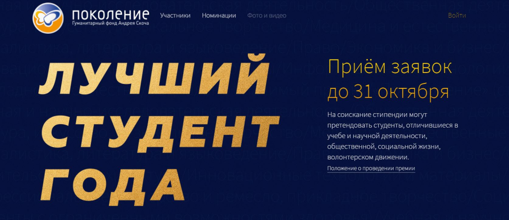 «Для студентов важно получать стипендию. Это не только материальная поддержка, но и признание заслуг, успехов и большого труда. Главное для молодежи – знать, что они делают правильные первые шаги во взрослой жизни, создают первый плацдарм, развивают в себе качества, которые потом помогут стать по-настоящему взрослыми, ответственными за себя, в первую очередь, и за окружающих», — делится Андрей Скоч, основатель фонда «Поколение».