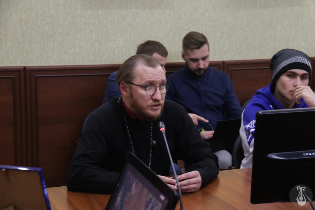 Священник, настоятель храма Святых Равноапостольных Мефодия и Кирилла, духовник Православной гимназии во имя святых Мефодия и Кирилла, отец Михаил Артеменко поговорил со студентами о библейской истории происхождения мира, христианском понимании смысла жизни человека, нормах христианской этики. Священнослужитель рассказал участникам вебинара о важности позитивного мышления, которое невозможно без связи с Богом.