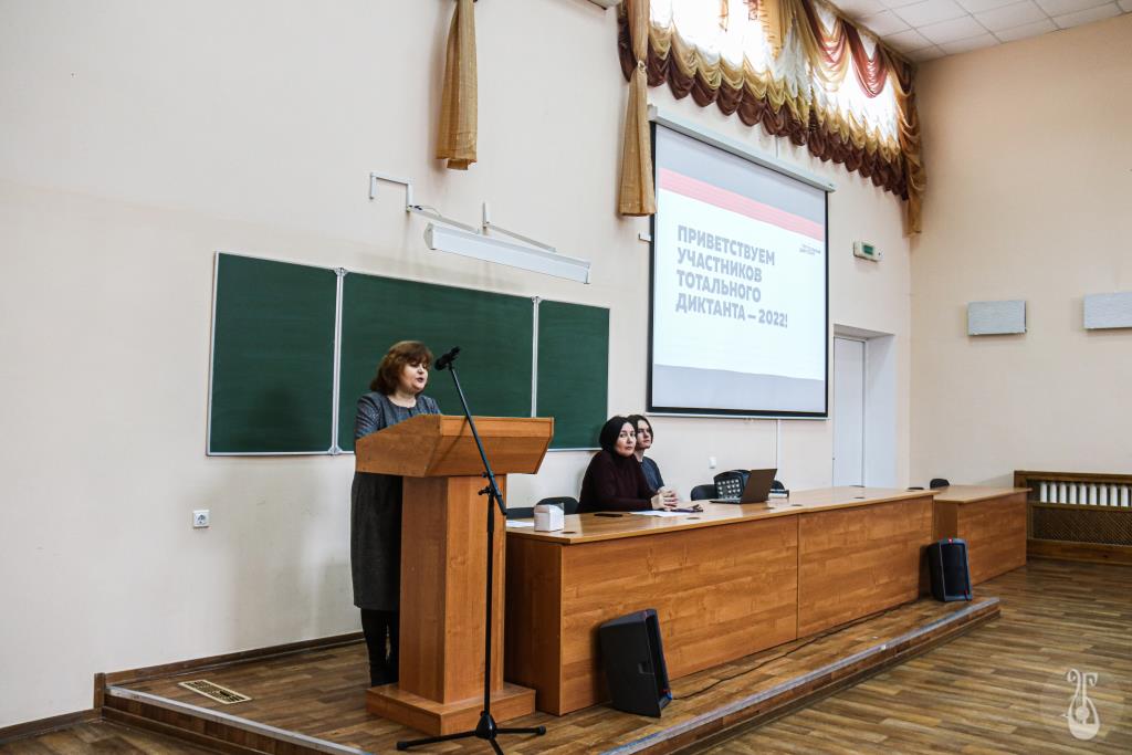 По многолетней традиции ведущим организатором и «диктатором» акции «Тотальный диктант в БГИИК» стала доцент кафедры философии, культурологии, науковедения Марина Кулабухова.
