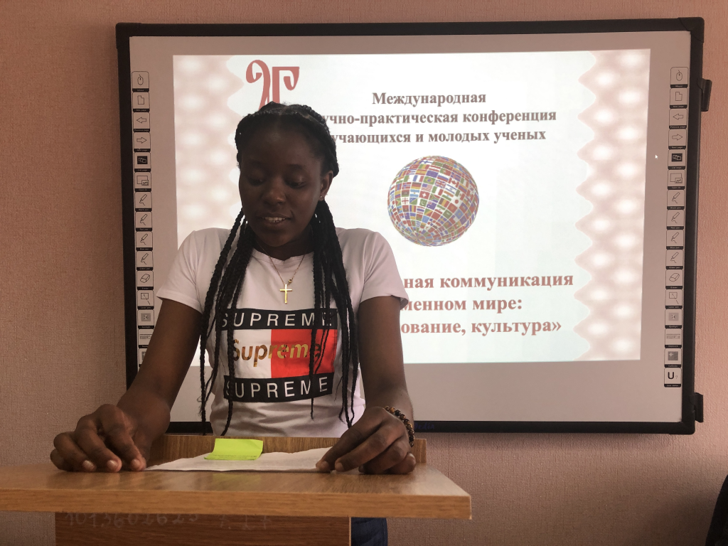 20 мая на базе Международного центра Белгородского государственного института искусств и культуры института прошла Международная научно-практическая конференция «Межкультурная коммуникация в современном мире: язык, образование, культура» среди обучающихся и молодых учёных, на которой очно выступили иностранные студенты БГИИК.
