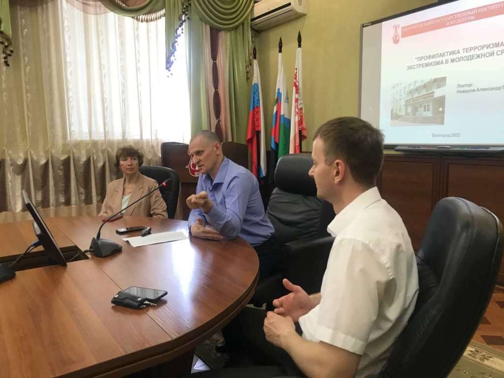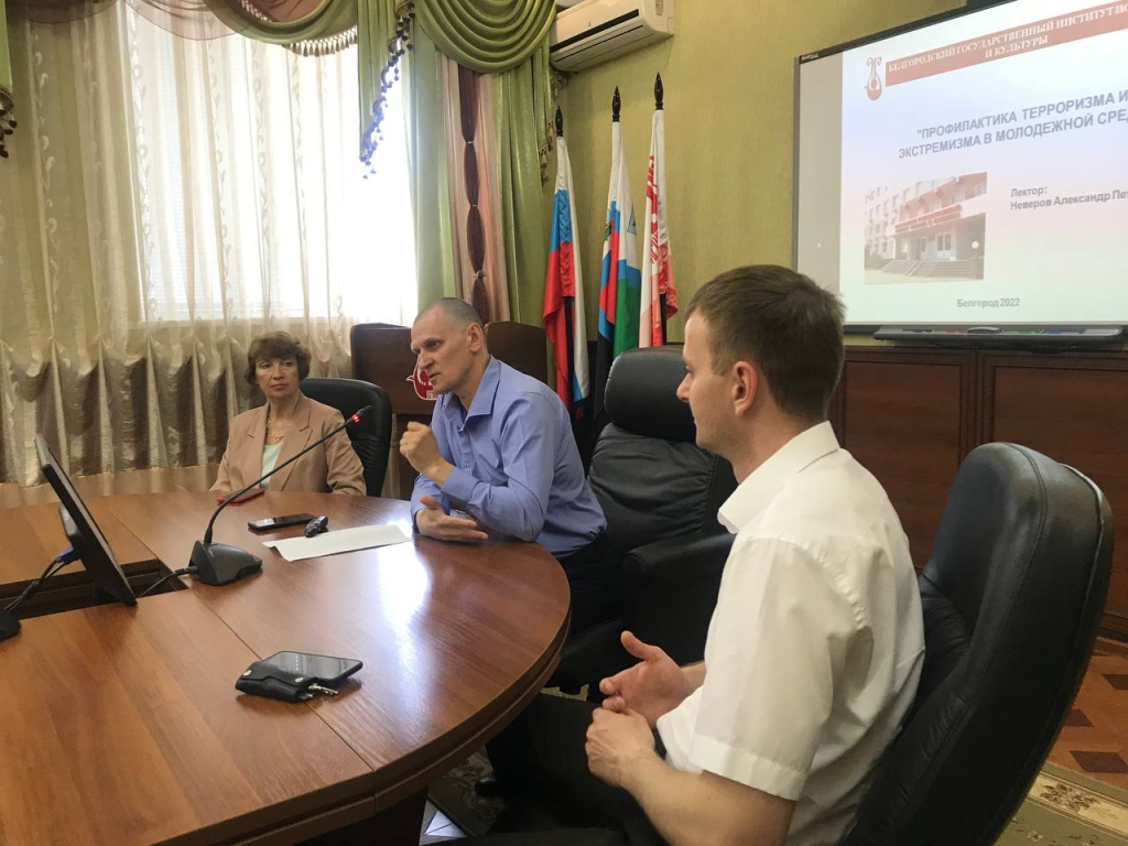 1 июня в зале заседаний Учёного совета Белгородского государственного института искусств и культуры в рамках реализации проекта «"РУБЕЖ": профилактика терроризма и экстремизма в молодёжной среде Белгородской области» состоялся образовательный семинар на тему «Нормативно-правовые и социально-психологические аспекты экстремизма и терроризма». Участниками мероприятия стали студенты Белгородского государственного аграрного университета имени В.Я. Горина и Белгородского государственного института искусств и культуры.