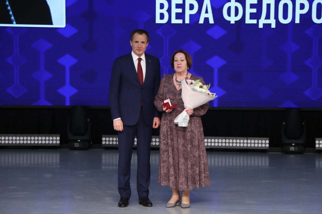 За достигнутые трудовые успехи и многолетнюю добросовестную работу медалью «За заслуги перед Землёй Белгородской» I степени Вячеслав Владимирович почётно наградил директора Регионального центра дополнительного профессионального образования БГИИК, заслуженного работника культуры Российской Федерации Веру Лупандину.