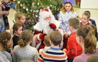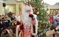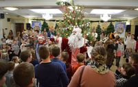 В завершение Дед Мороз и Снегурочка провели не только игры, но и традиционный хоровод вокруг Рождественской ёлки. Все желающие могли рассказать Деду Морозу стихотворение и получить сладкий подарок.
