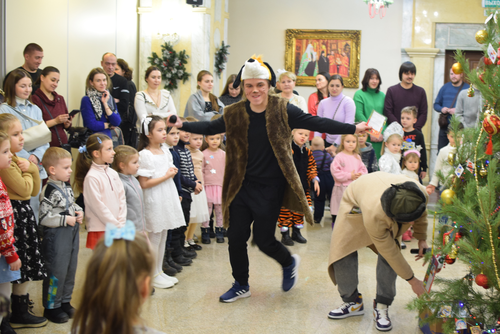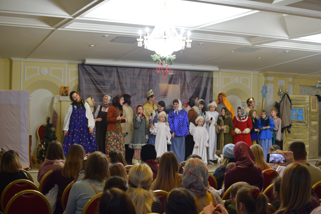 Музыкальный православный театр «Лествица» представил гостям спектакль «Матронушка» о житии блаженной Матроны Московской. Юные актёры рассказали о ценностях веры, надежды, любви и напомнили о важных добродетелях: милосердии, сострадании, терпении. Затем гостям была предложена интермедия у Рождественской ёлки по мотивам сказок Эдуарда Успенского. Гостеприимные Дядя Фёдор, Кот Матроскин и Пёс Шарик окунули в атмосферу весёлого зимнего праздника: пели вместе с маленькими гостями, проводили игры. В роли отрицательного героя выступил Почтальон Печкин — долго не соглашался вернуть посылку с подарками. Зажигательные танцы гостей и сказочных персонажей создали праздничное настроение даже серьёзному Почтальону.