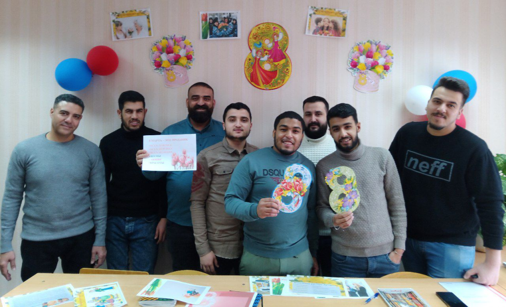 Ребятам удалось ближе познакомиться с историей, традициями празднования 8 Марта в России. На занятии студенты, которые приехали из разных стран мира, поделились информацией о праздновании 8 Марта в их странах.