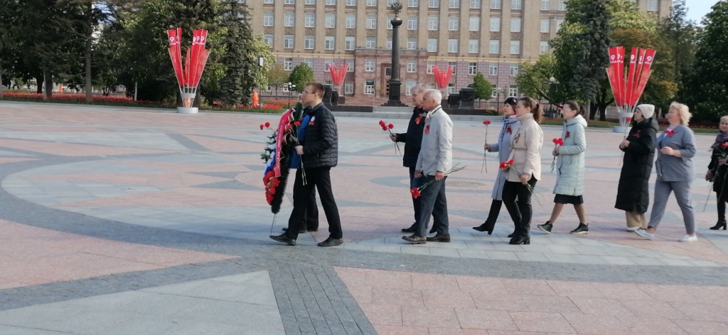 Коллектив Белгородского государственного института искусств и культуры возложил цветы и венки к композиции «Скорбящая мать» у мемориального комплекса «Вечный огонь» на Соборной площади.