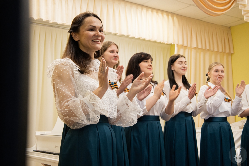 Преподаватели и студенты кафедры исполнили песни, которые залечивали сердца героев, придавали уверенность и бодрость духа. В Детской школе искусств имени А. В. Тарасова прозвучали «Синий платочек», «В землянке», «Огонёк», «Катюша» и многие другие. Чтобы считать эмоции — достаточно посмотреть в зал: зрители с восхищением и слезами смотрели на артистов. Каждый из выступающих погрузил в атмосферу исторической ретроспективы, позволил прочитать мысли людей, завоевавших свободу от немецко-фашистских захватчиков.