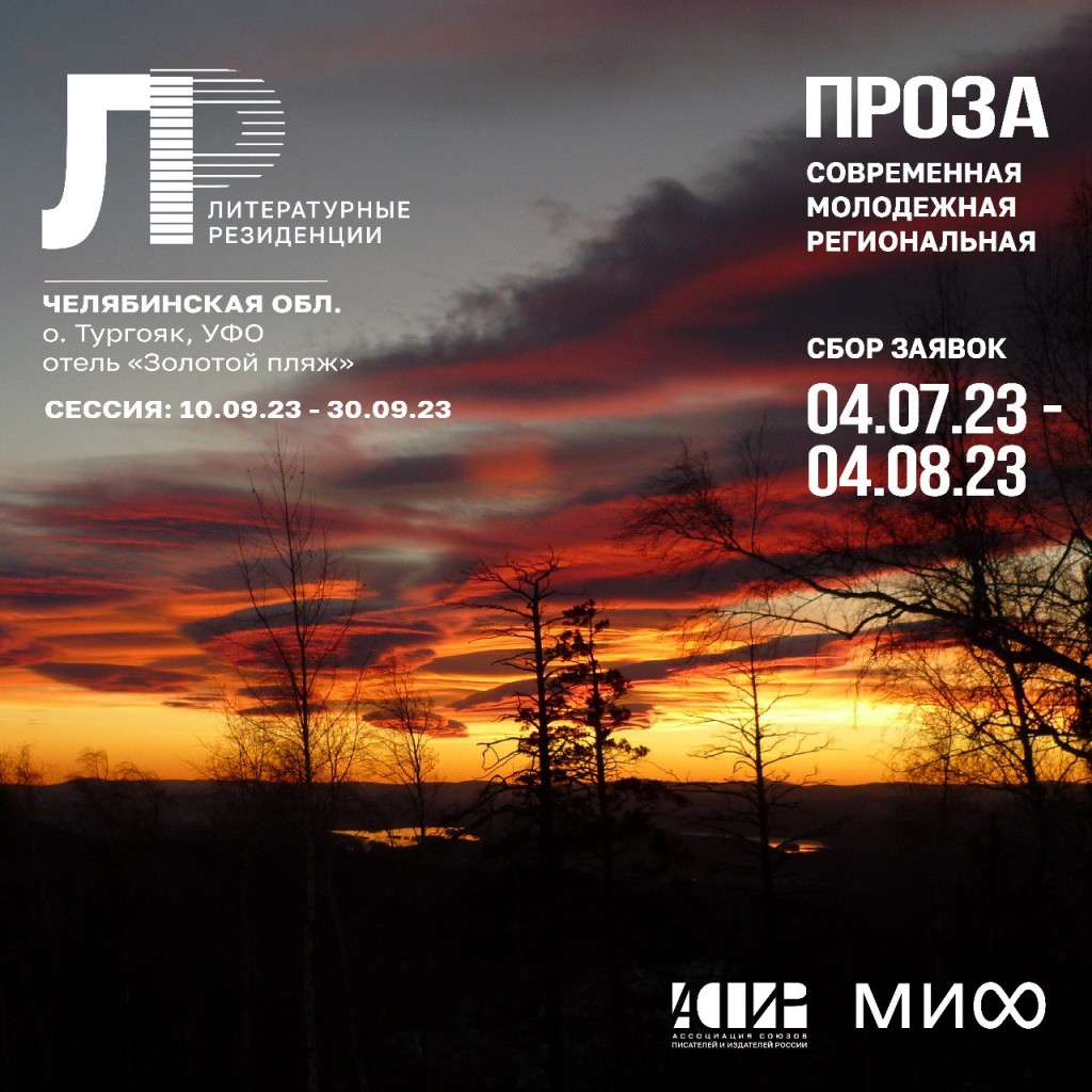 Ассоциация союзов писателей и издательств России совместно с издательством «МИФ» открывает приём заявок на участие в Литературной резиденции для прозаиков. С 10 по 30 сентября в Миассе, на берегу озера Тургояк, вблизи Ильменских гор — одного из старейших заповедников страны участники смогут улучшить свои профессиональные навыки. На протяжении 20 дней с ними будут работать ведущие редакторы издательства «МИФ».