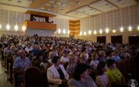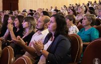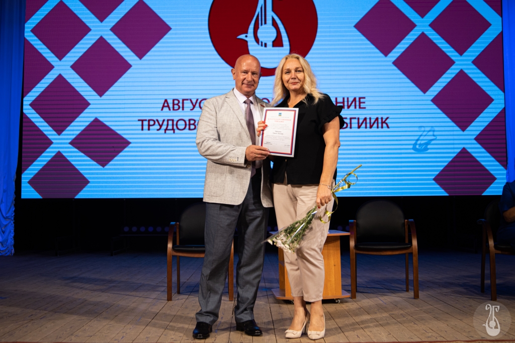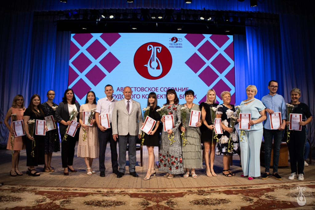 Торжественная часть собрания — награждение. Благодарственное письмо Губернатора Белгородской области за добросовестный плодотворный труд, высокий профессионализм и значительный вклад в организацию Сергей Иванович вручил Наталье Бараниченко — проректору. Почётную грамоту Министерства культуры Белгородской области Герману Бондареву — заведующему общежитием БГИИК. В сложный период для жителей Шебекино Герман Валерьевич стал «отцом», курировал работу пункта временного размещения, организовал комфортное пребывание гостей в ПВР. Благодарность администрации города Белгорода получил доцент кафедры фортепиано Этери Толмачёва. Наградили сотрудников грамотами Белгородской областной организации профессионального союза работников культуры и БГИИК.