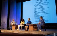 С докладом о векторе профориентации выступила Надежда Сердюкова — директор Центра по профориентации и содействию трудоустройства выпускников. В связи с уходом от болонской системы образования в этом году планируют пересмотреть программы подготовки специалистов. Сергей Иванович отметил: необходимо сделать упор на ценность преподавателя в системе обучения и на повышение духовно-нравственного воспитания молодёжи.