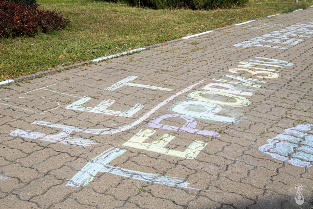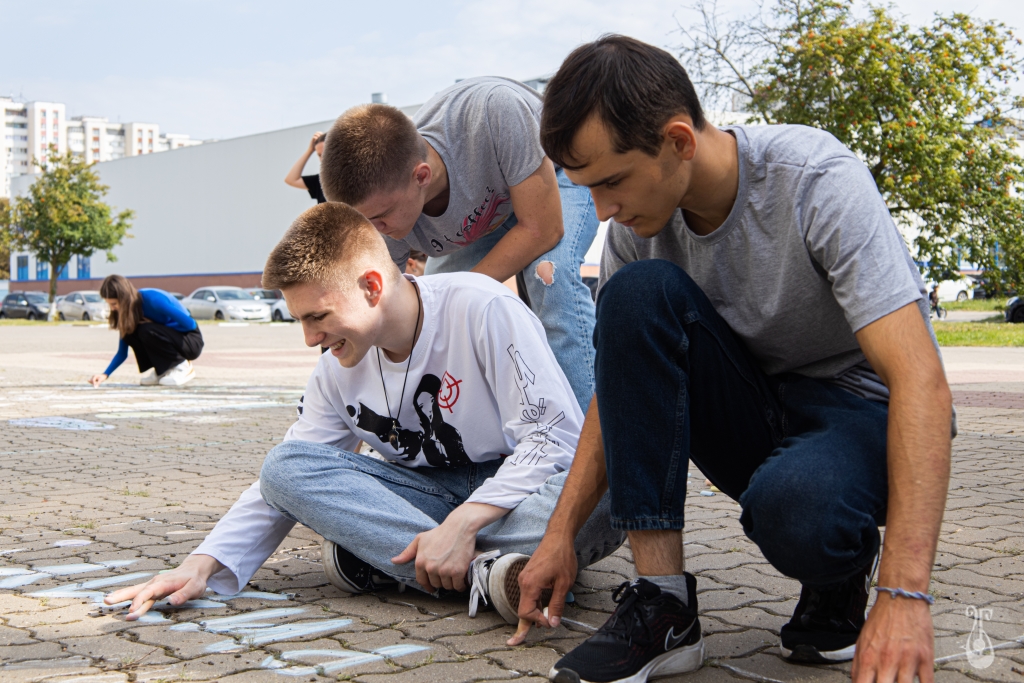В этом году участие приняли пять факультетов, студенты исполнительского искусства рисовали на территории учебного корпуса, на Гражданском проспекте. Около летней сцены главного корпуса ребята изобразили голубей — символ мира, мать, бережно обнимающую Землю, как родное дитя, поля, лужайки, ребёнка, не желающего жить в мире террора. На выполнение работ участникам был дан час.