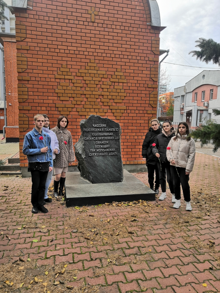 Студентов восхитил рассказ Юрия Владимировича. Самоотверженность и героизм сотрудников, которые они проявляют каждый день, вызвало у ребят уважение и почёт специалистов ведомства. Будущие профессионалы в сфере культуры и искусства выразили благодарность людям, пожертвовавшим жизнью ради безопасного будущего граждан России, и возложили цветы к памятному камню, почтили память минутой молчания сотрудников органов внутренних дел, погибших при исполнении служебного долга.