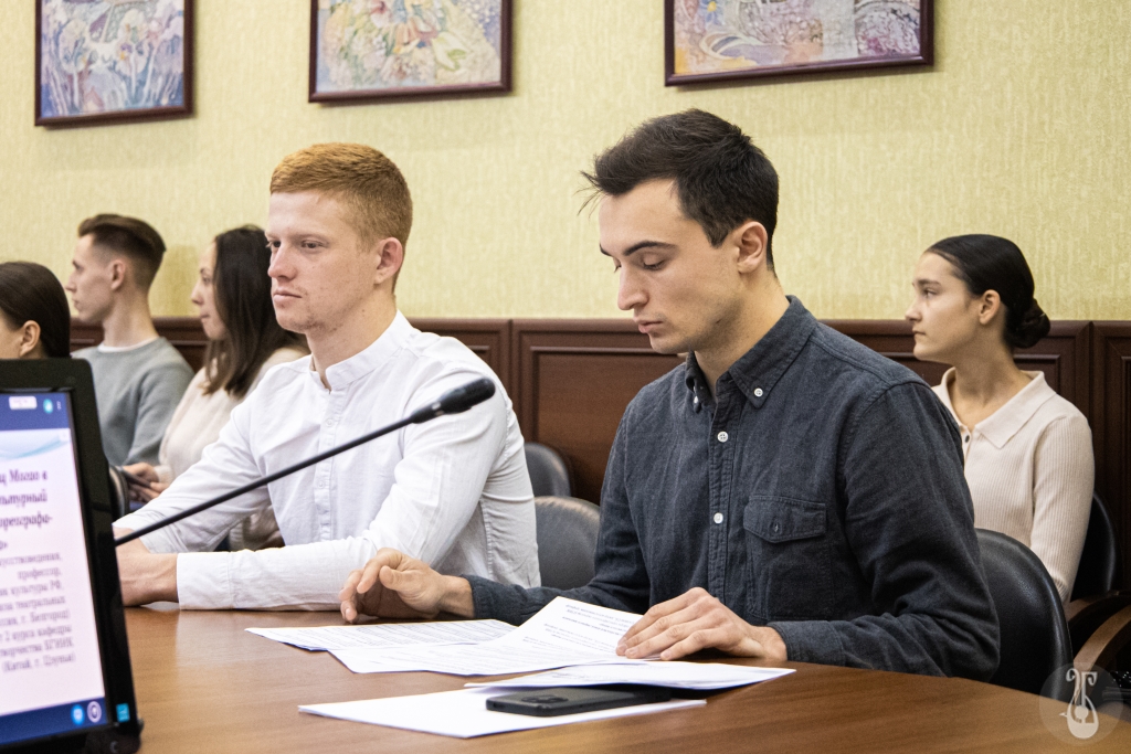 Состоялось конструктивное обсуждение докладов. Коллеги из других городов и стран представлены интересную и полезную информацию. Заместитель декана факультета искусств МГУ им. М.В. Ломоносова, кандидат искусствоведения, заведующий кафедрой театрального искусства, профессор, почетный работник сферы образования РФ, член Союза композиторов и Союза театральных деятелей РФ Елена Куриленко осветила вопросы музыкознания в контексте хореографического образования; доктор искусствоведения, профессор, Заслуженный работник культуры РФ и Республики Бурятия, член Союза театральных деятелей РФ Ольга Буксикова совместно с педагогом хореографической школы, магистрантом второго курса кафедры хореографического творчества БГИИК Яном Я рассмотрели фрески пещер-святилищ Могао в Китае как историко-культурный источник для работы хореографа-постановщика; заведующий кафедрой хореографического творчества БГИИК, балетмейстер ансамбля песни и танца «Везелица», член Союза театральных деятелей РФ Андрей Татаринцев темой для доклада выбрал действенный танец и музыкальную драматургию в современном хореографическом произведении; доцент кафедры хореографического творчества БГИИК, член международного Союза хореографов Мария Амелина представила анализ научно-творческой деятельность лаборатории «Традиционная танцевальная культура Юга России: семантика и современные формы трансляции» по изучению и трансляции танцевальной культуры Белгородчины»; доцент кафедры «Педагогика хореографии» факультета «Хореография» Казахской национальной академии искусств им. Т. Жургенова, докторант второго курса Алибек Исалиев рассказал о динамике развития положения в паре в европейской программе спортивных бальных танцев; доцент кафедры хореографического творчества БГИИК Роман Трофимов представил анализ в контексте синергетического подхода в исследовании ранних форм степ-танца.