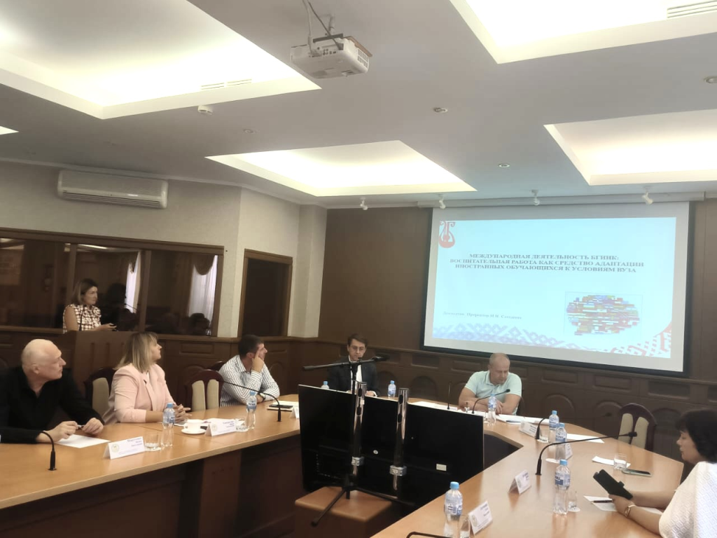 От нашего вуза данную комиссию представляют проректор Наталья Сегедина и начальник отдела по работе с иностранными обучающимися Татьяна Донникова. Наталья Николаевна выступила с докладом «Международная деятельность БГИИК: воспитательная работа как средство адаптации иностранных обучающихся к условиям вуза».