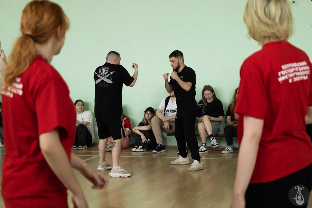 Под руководством Евгения Геннадьевича Токарева, основателя клуба единоборств «Сила духа», студенты не только наблюдали за мастерством профессионалов, но и сами смогли поучаствовать в тренировках. Атмосфера была наполнена энергией и энтузиазмом — каждый из участников старался выложиться на максимум, отрабатывая техники и приемы, которые демонстрировали мастера.