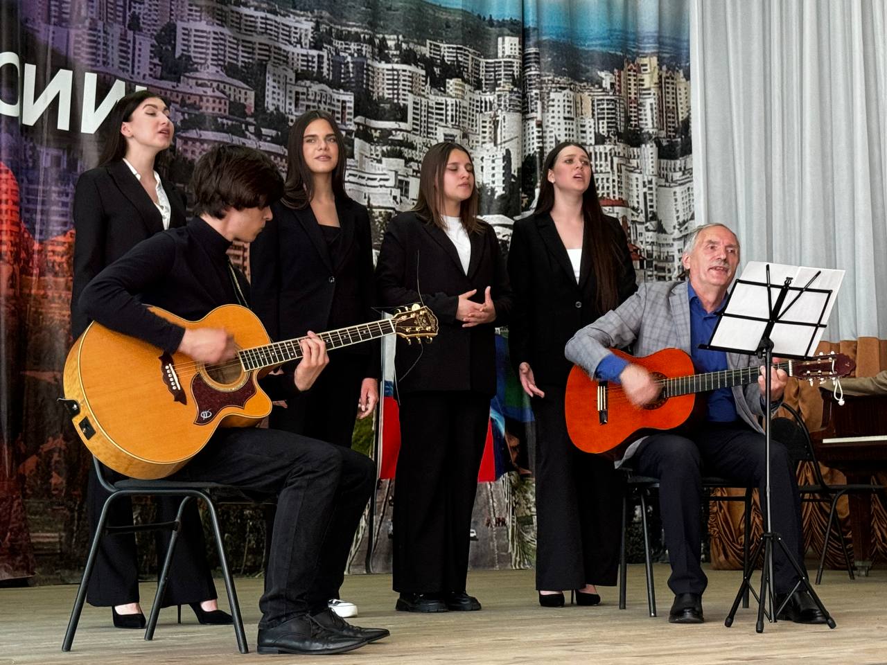 28 мая в рамках профориентационной работы состоялась встреча преподавателей и студентов кафедры музыкального образования нашего института и обучающихся Белгородского педагогического колледжа. Доцент кафедры заслуженный работник культуры РФ И.Н. Карачаров и студенты 21 группы МО рассказали об основных направлениях подготовки педагогов-музыкантов и показали концертную программу бардовской песни «Изгиб гитары желтой». Зрители с интересом слушали песни А. Суханова, Ю. Визбора, О. Митяева. Концерт закончился совместным исполнением песни «Нам нужна одна Победа» Б. Окуджавы из фильма «Белорусский вокзал».