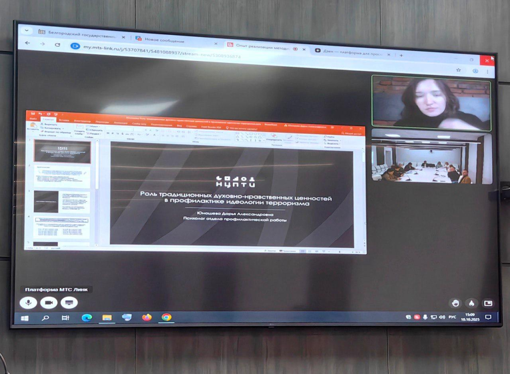 10.10.2025 года на базе Координационного центра по вопросам формирования у молодежи активной гражданской позиции, предупреждения межнациональных и межконфессиональных конфликтов, противодействия идеологии терроризма и профилактики экстремизма ФГАОУ ВО «Белгородский государственный национальный исследовательский университет» НИУ БелГУ состоялся круглый стол «Опыт реализации методики сохранения и укрепления традиционных ценностей. Проблемы и пути их решения».