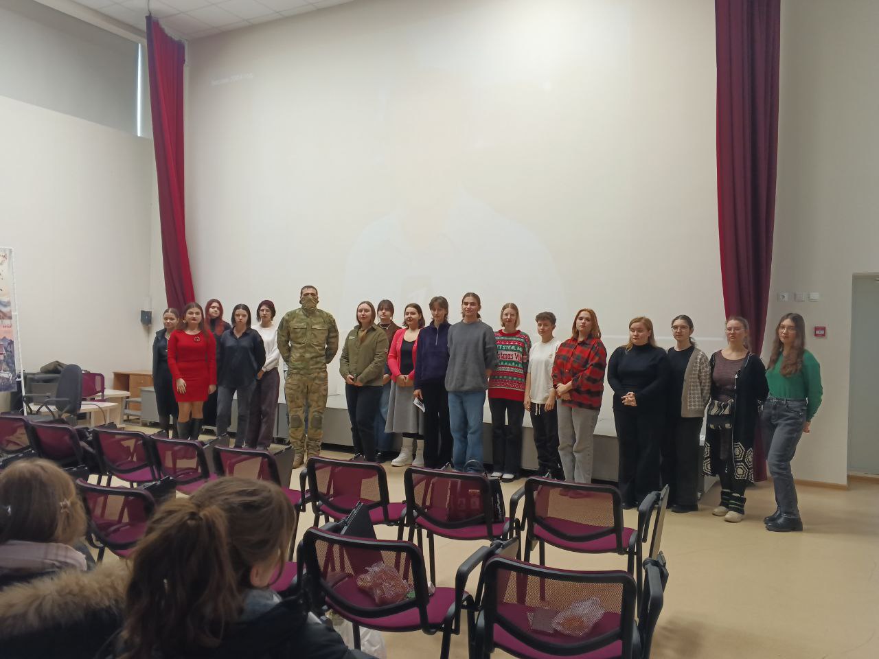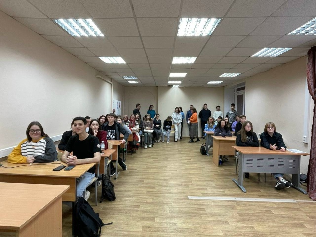 «Герои среди нас» так назвали встречу студенты кафедры РТПиП с военнослужащей СВО младшим сержантом Ниной Аброскиной, которая награждена медалью Луки Крымского за развитие и вклад в организации медицинской помощи нашим военнослужащим на Курском направлении.