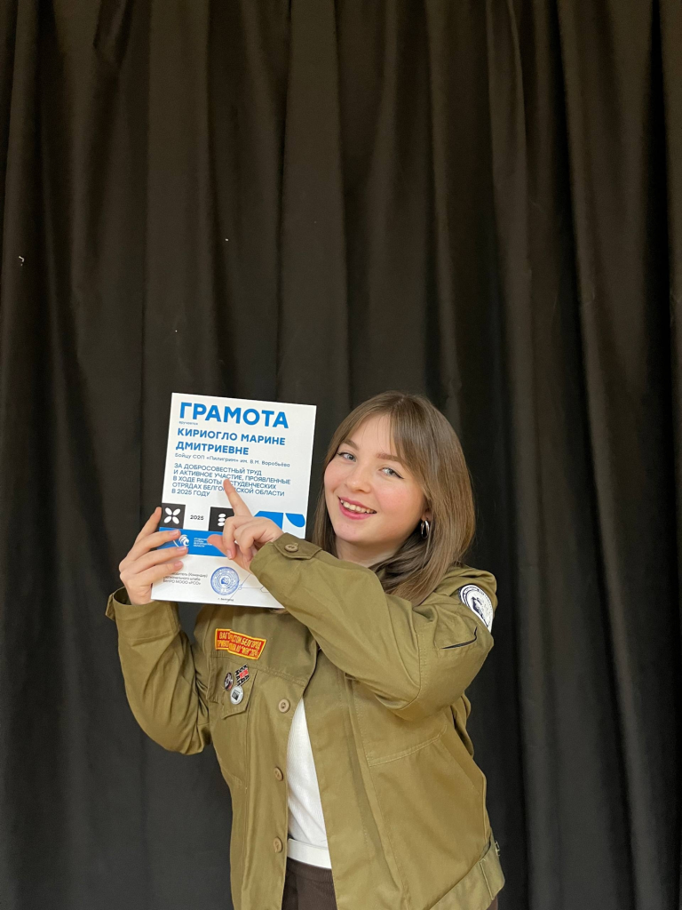 Кроме того, студенческие отряды Белгородского государственного института искусств и культуры получили Диплом победителя в конкурсе-рейтинге среди штабов студенческих отрядов высших учебных заведений Белгородской области по итогам 2025 года в номинации «Лучший охват студенческой молодежи».