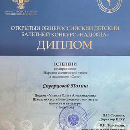 Полина Скворцова — лауреат I степени
